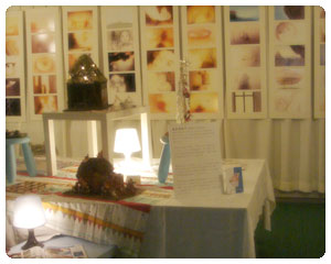 さぁ、展覧会をやってみよう!そう思った時にはもう29歳でした。持病に蝕まれた身体は、自由と遠いところにありました。絶望する日々を”作る私”が助け続けて。いつしか身体は器でしかないと思うようになっていました。そしてその器にたっぷりの精神が入っているのだと。 しかし……たった一日の展覧会にどれくらいの人が集まるというのだろうか。迷う私に父が言いました。「お葬式だっていきなり一日だけなのに、なんとか都合つけてみんな集まるだろ。」父は僧侶です。いつもそう、家族の言葉に助けられて私は生きている。 |