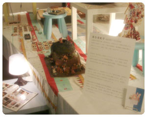 昼Spaceでは、学生時代から作り続けてきたミニチュア作品と人形の展示を行いました。 セッティングイメージは”おままごと”。小さなテーブルやイスに、お人形やミニチュアの家、ミニフード、おままごと道具が並んでいます。 子供の頃からおままごとが大好きでした。シルバニアファミリーも。人形遊びも。すべての延長線上に今日という日があるんだな……と、幼稚園時代の先生方とお話していて気付きました。 |