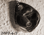 ![]() ・6/7という日・ ふと思いついて出来上がったシルバーストラップ。ちょうど一年前の今日もこうして粘土をこねていま した。6月は身近な人々の誕生日が続きます。気に入ってもらえるかな?と思いながら、お礼やオメデ トウの気持ちを込めて、2つで1つのストラップ「Blue」が完成しました。(2006.6.7) |